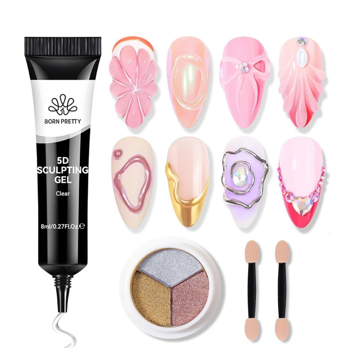 Crea diseños únicos y elegantes con volumen y textura. ¡Transforma cada uña en una obra de arte con el 5D Sculpting Gel de Born Pretty! 🌸💫 Ideal para diseños con texturas.