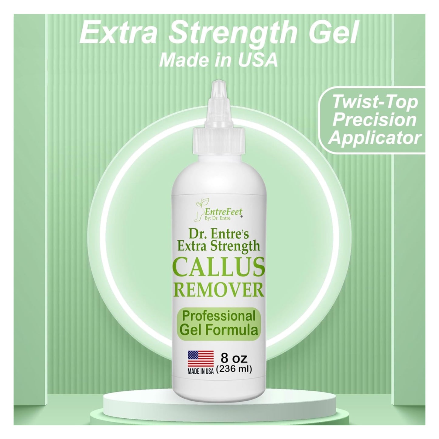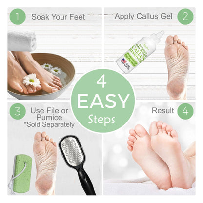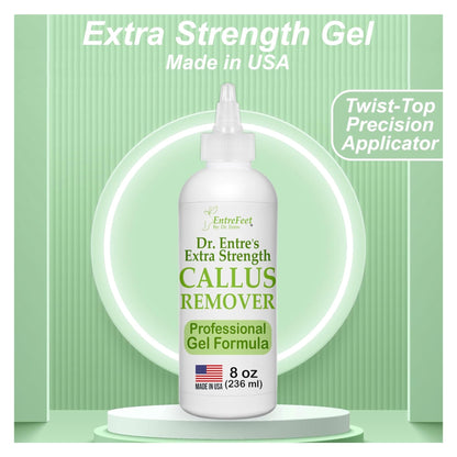 Dr. Entre's Callus Remover Gel: 8oz Extra Strength con aplicador de precisión, removedor de callos para pies, cuidado de pies, suministros de herramientas de pedicura. Instruciones de uso en la botella.