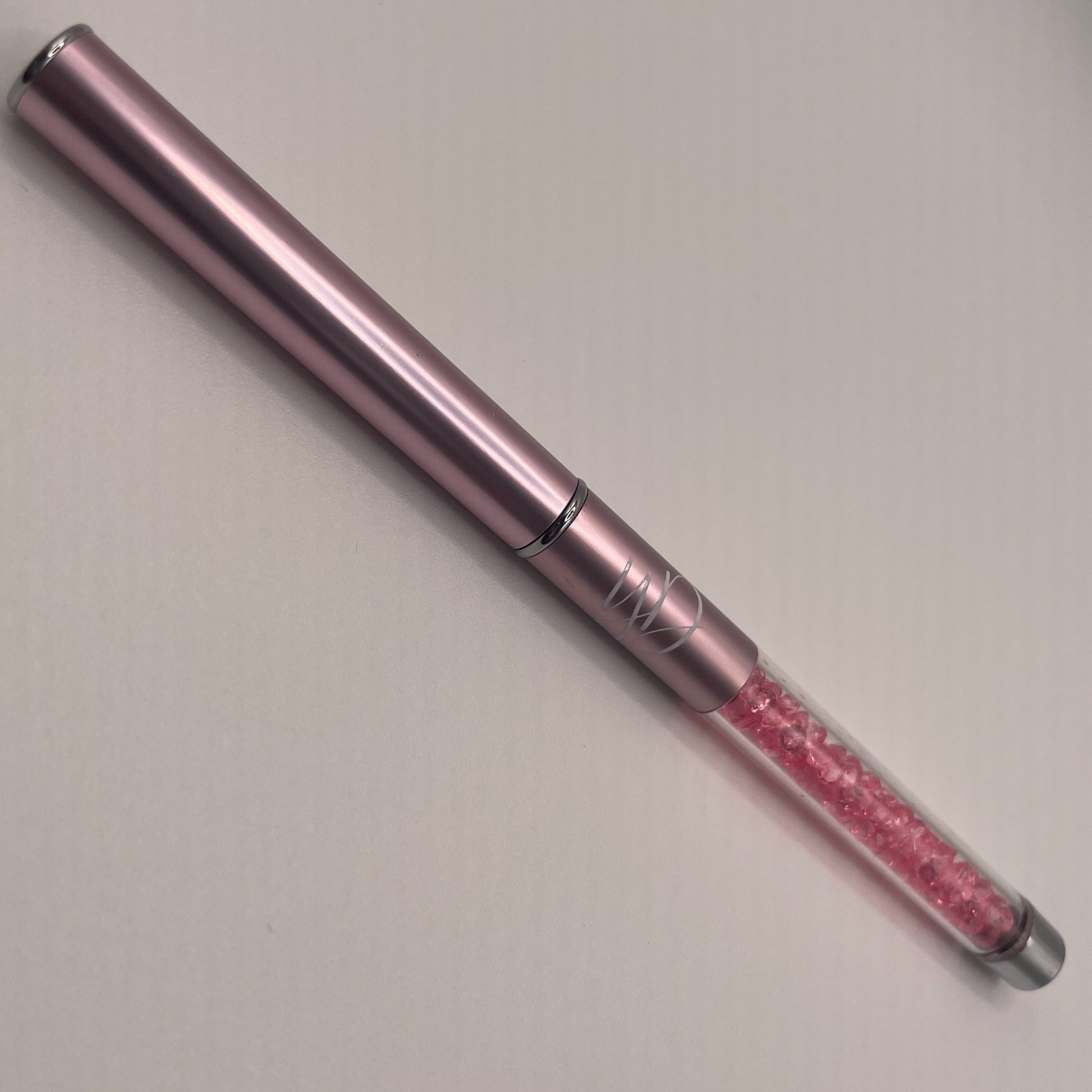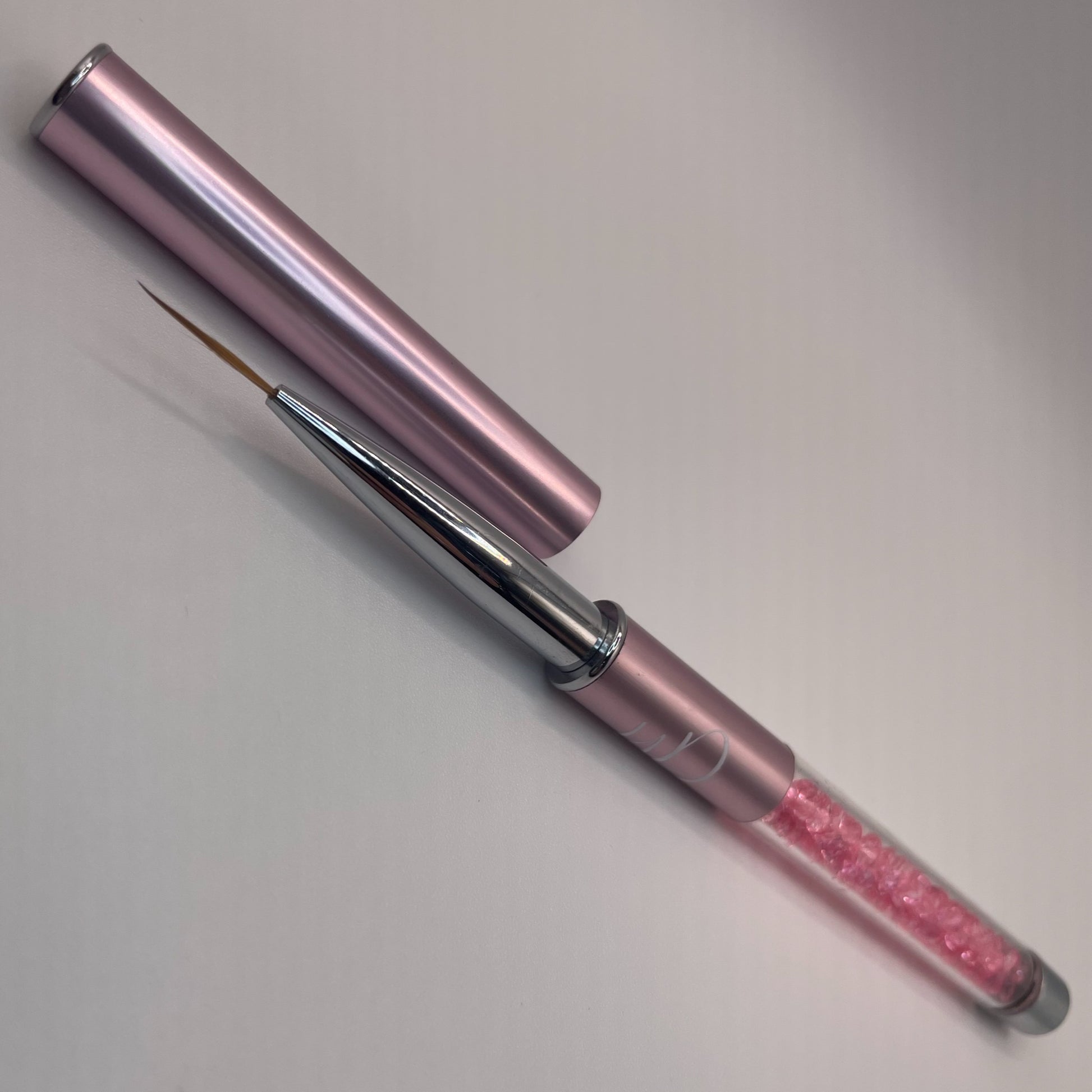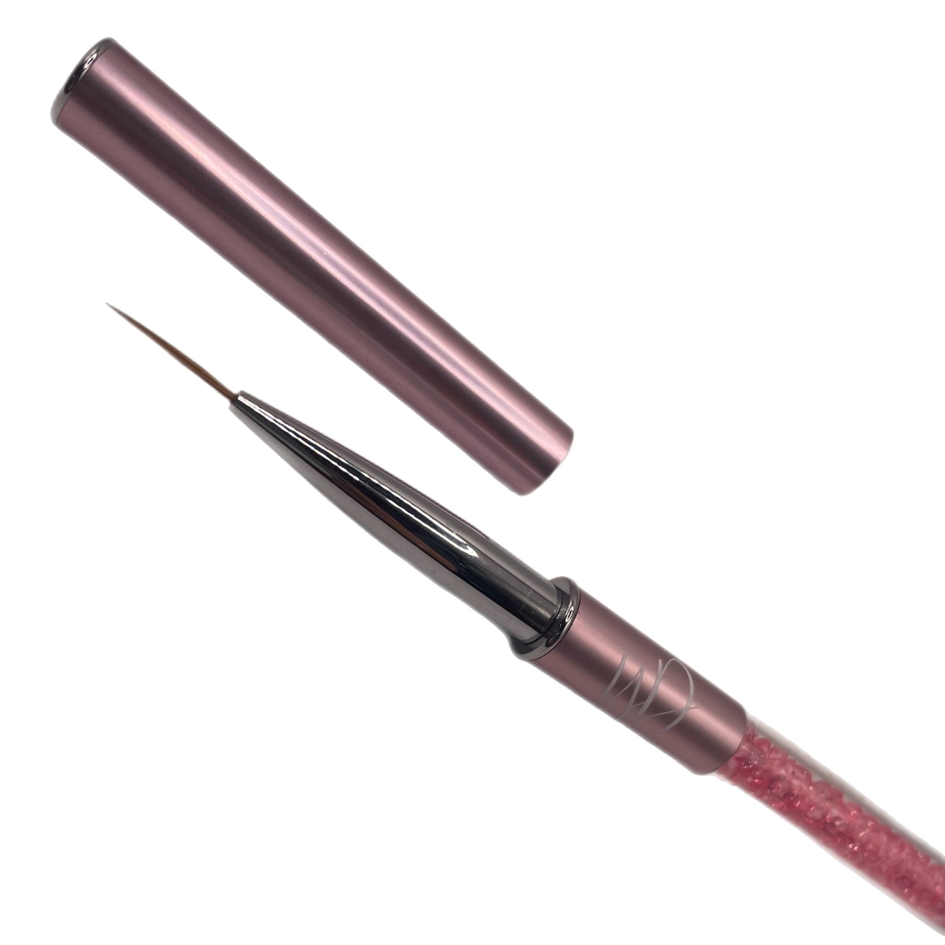 Pincel delineador 11 MM, elaborado en acero inoxidable y pelo del pincel 100% kolinsky, ideal para realizar la técnica del french, líneas y diseños. Mango con detalles de diamantes rosados.