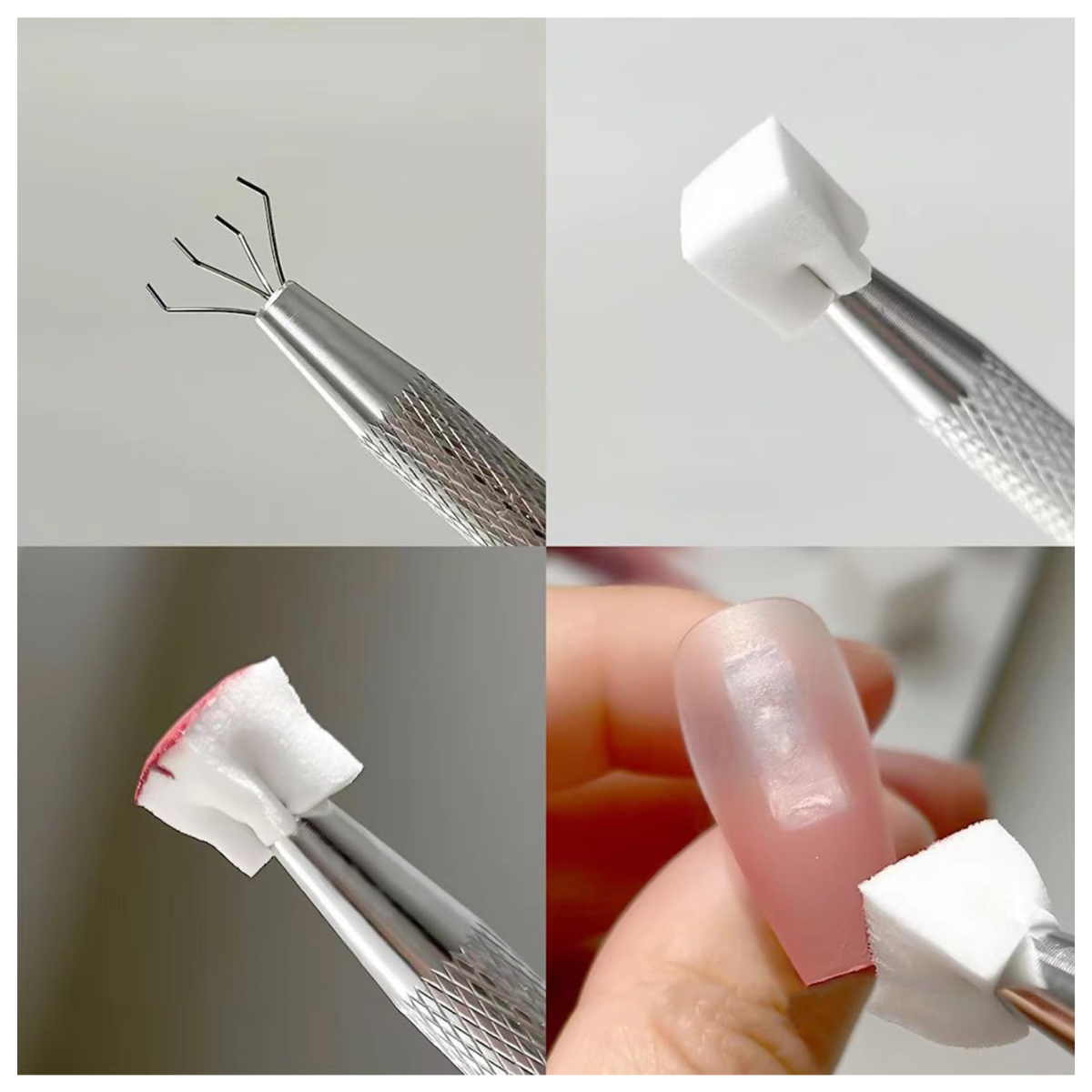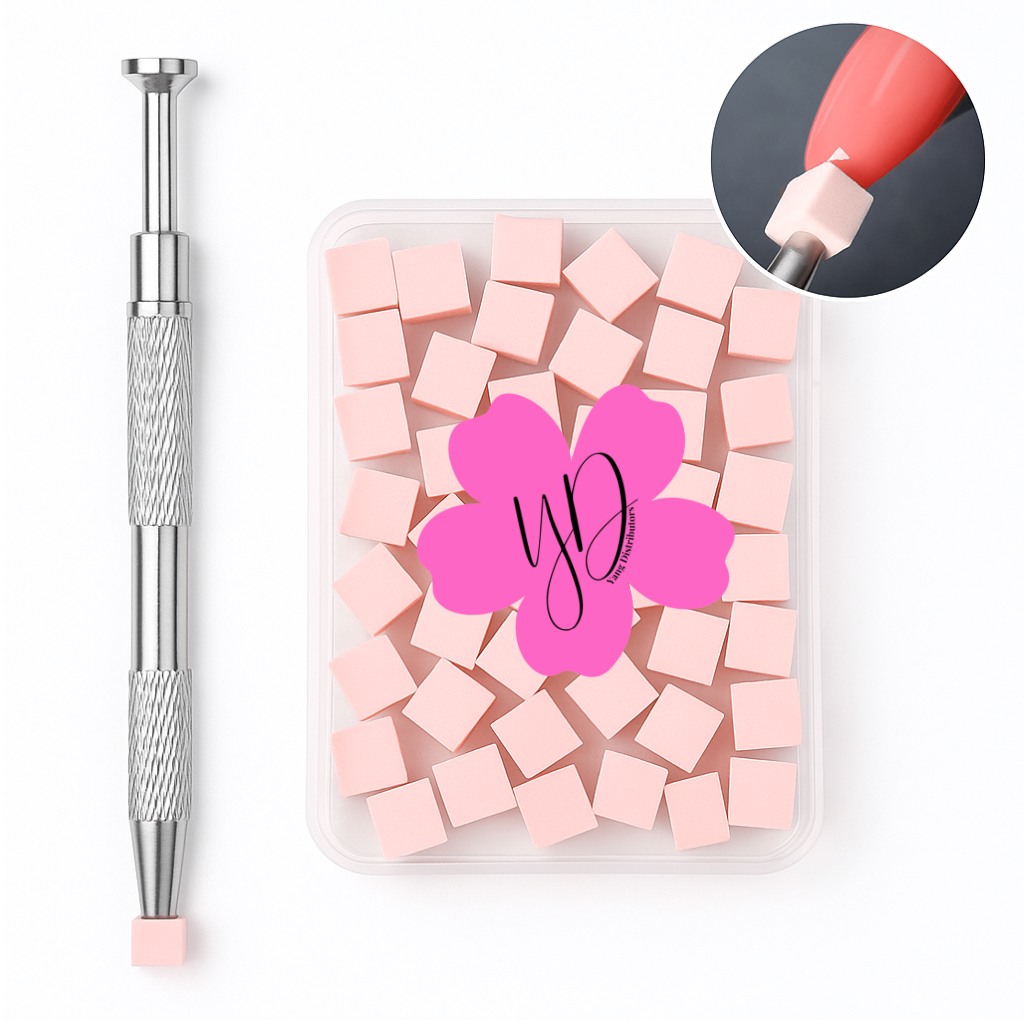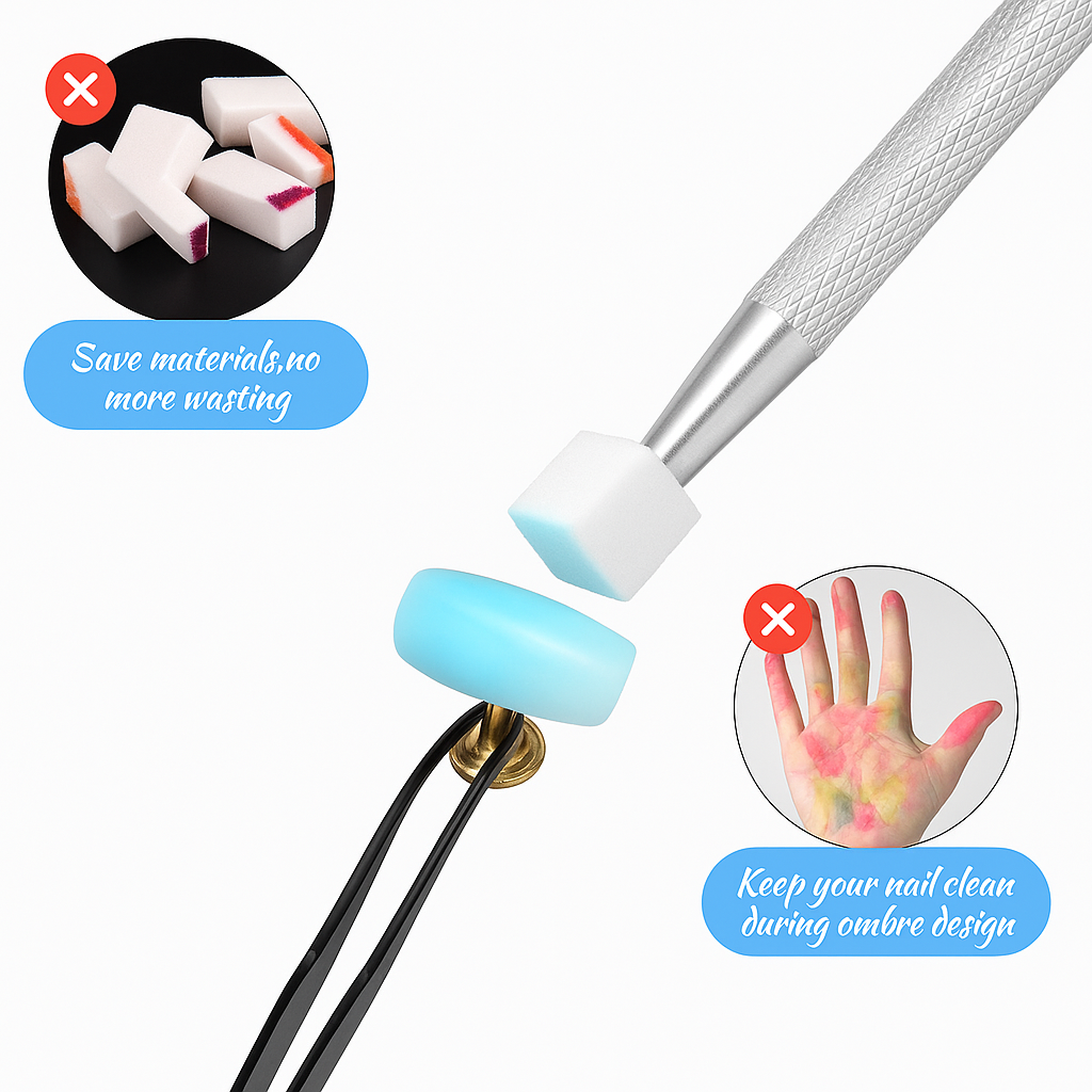 Logra diseños profesionales y difuminados perfectos en tus uñas con este set completo de 100 esponjas desechables y su herramienta metálica reutilizable. Ideal para técnicas de baby boomer, degradados, efectos ombré y mucho más.