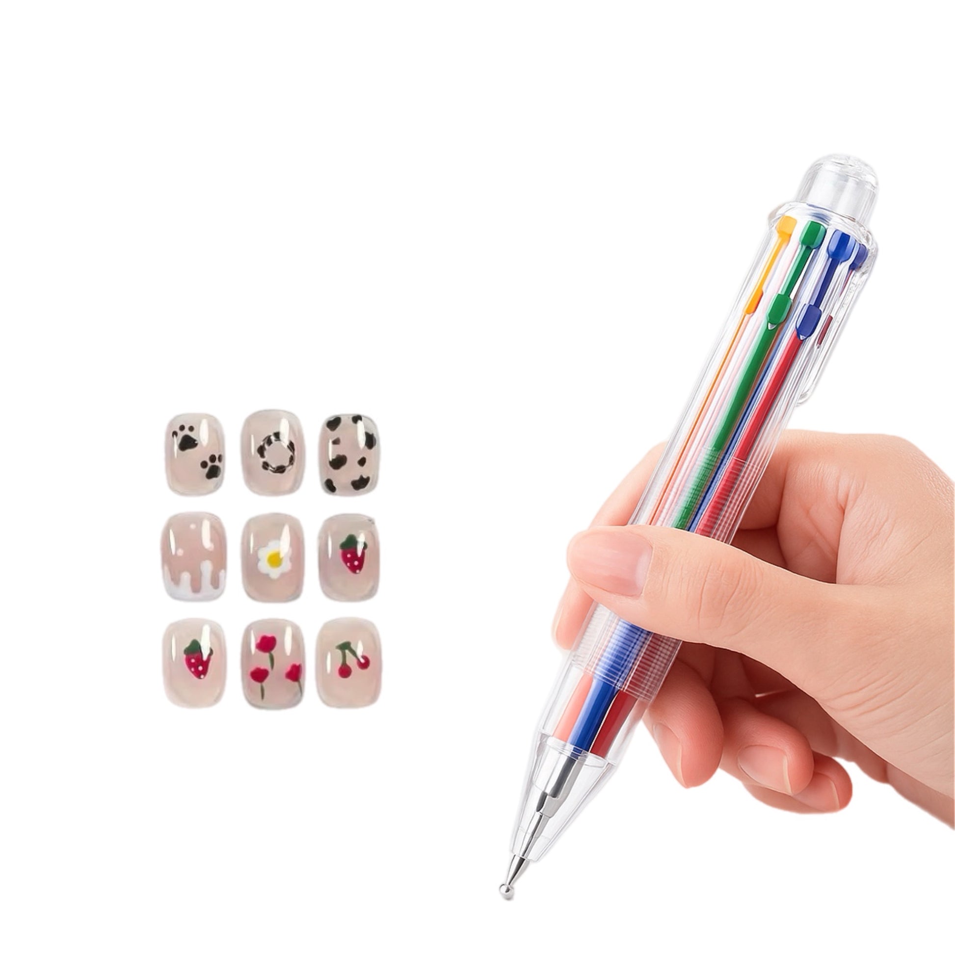 ¡Creatividad al alcance de un clic! Este innovador bolígrafo decorador 6 en 1 reúne seis herramientas de punteo (dotting tool) en un solo diseño, ideal para crear diseños kawaii, frutas, flores, huellitas y mucho más.
