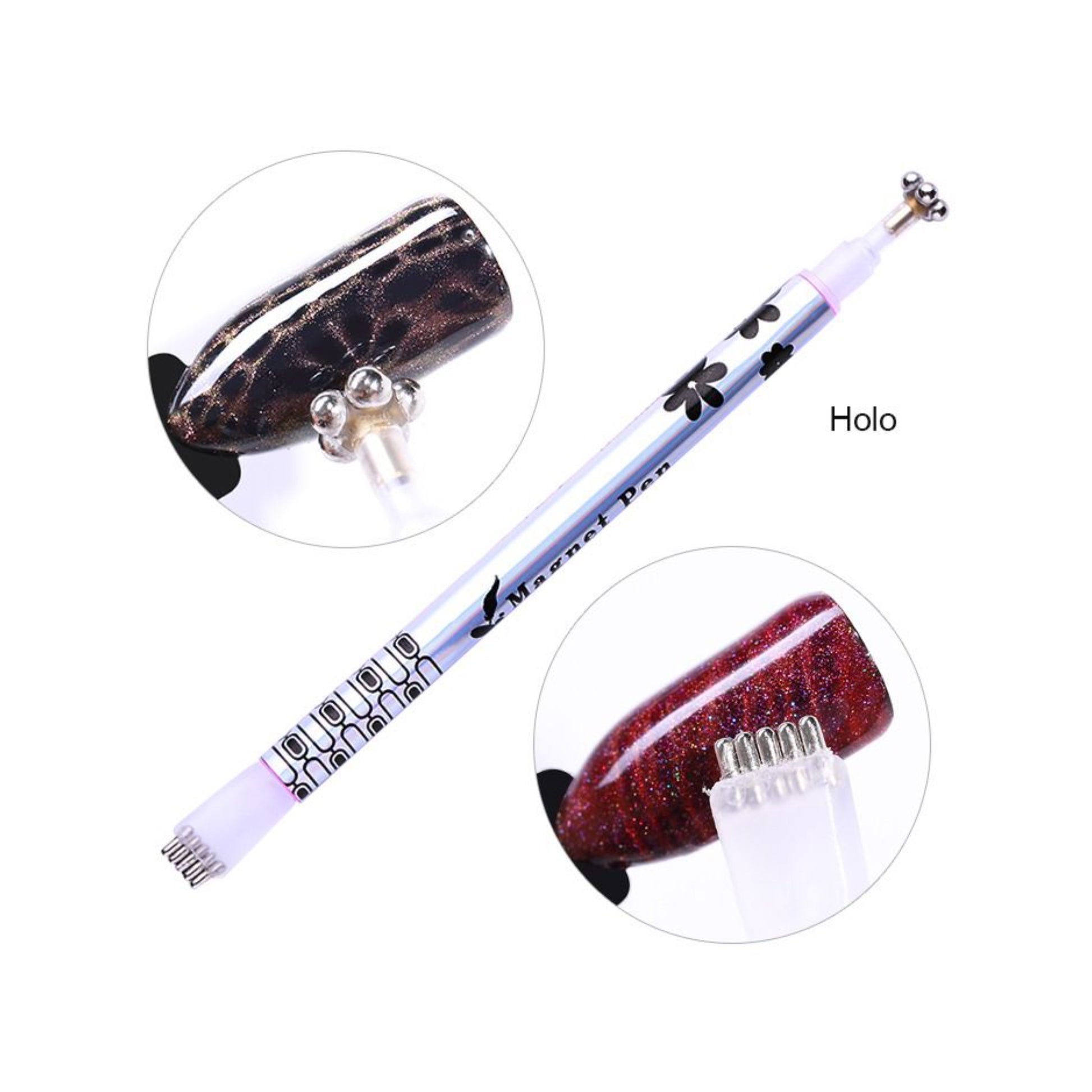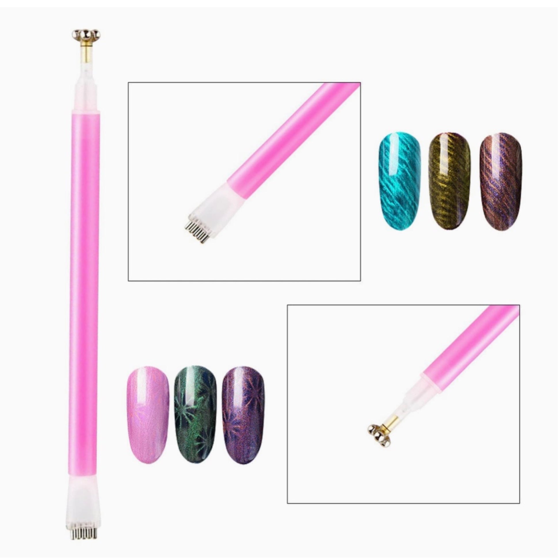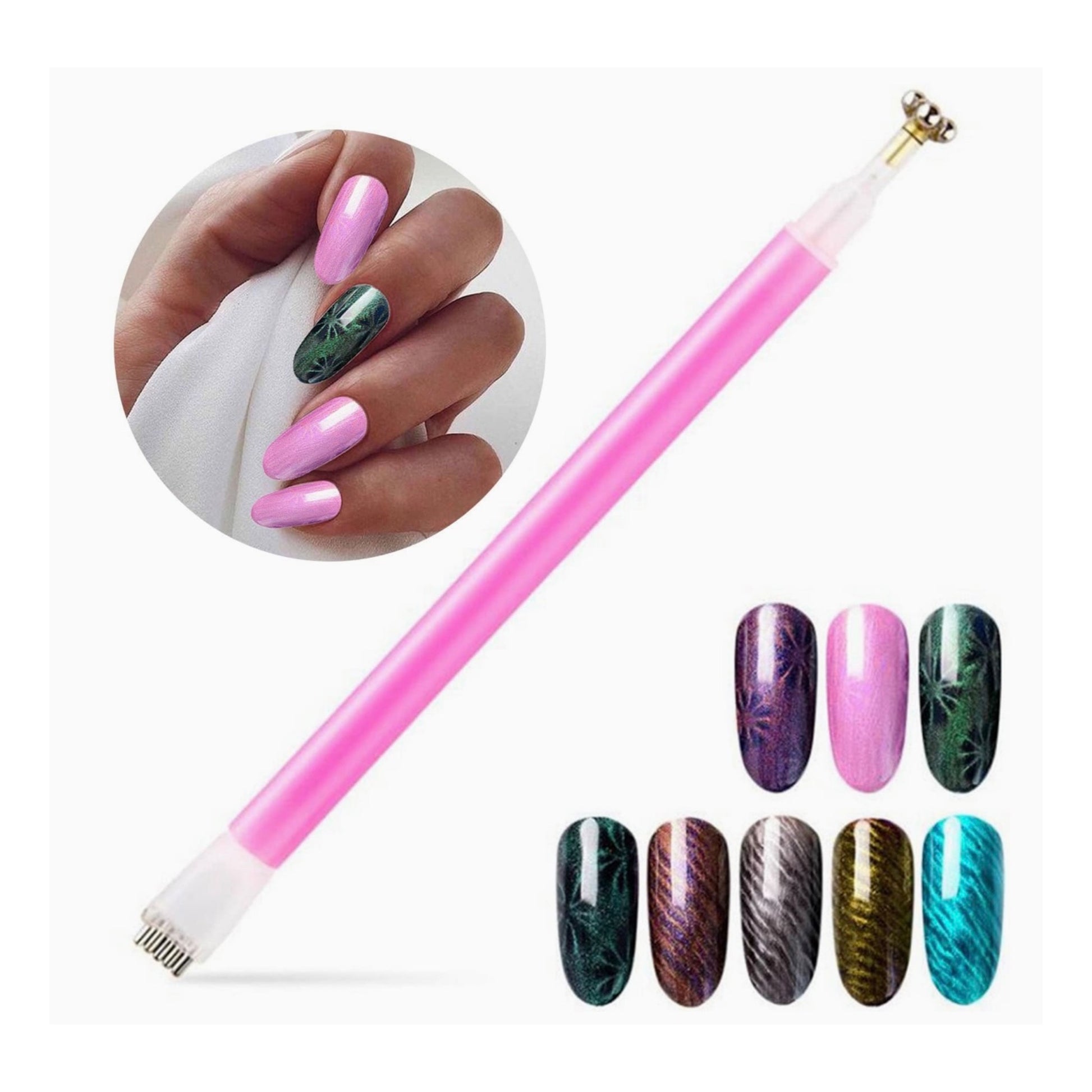 Born Pretty Imán para crear efecto cat eye en las uñas, palo magnético de doble cabeza, lápiz para efecto 3D, herramienta de manicura, efecto cat eye, un lado para formar lineas y otro para dar forma floral.