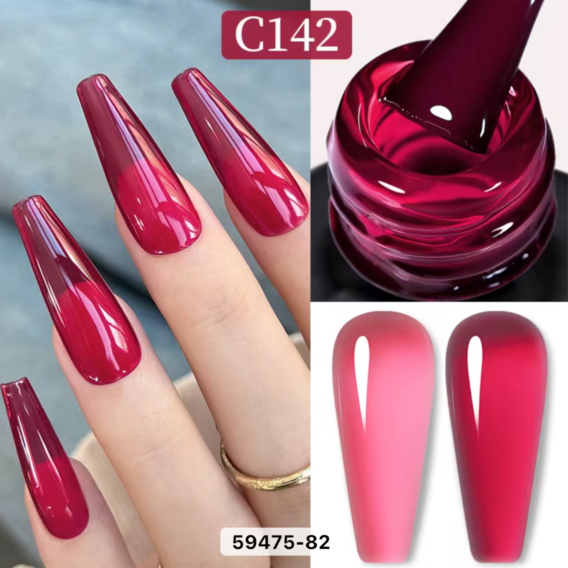 Esmaltes en gel colores con efecto jelly translúcidos. Perfectos para utilizar en todos los diseños trending. Tamaño 15ml.