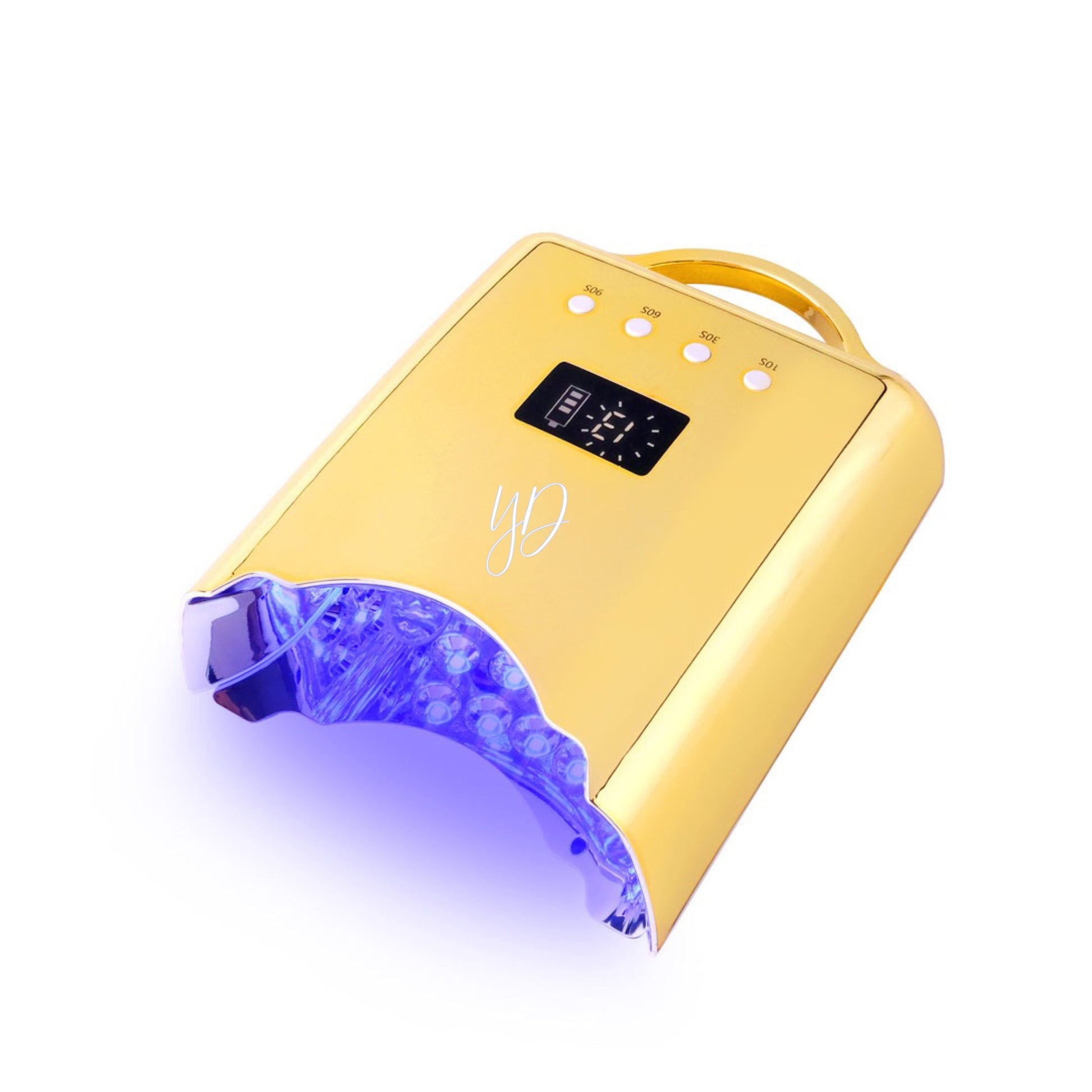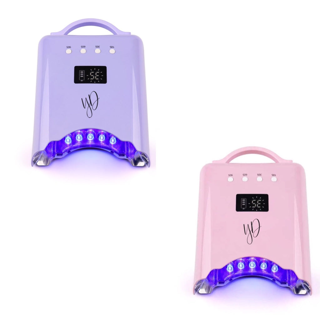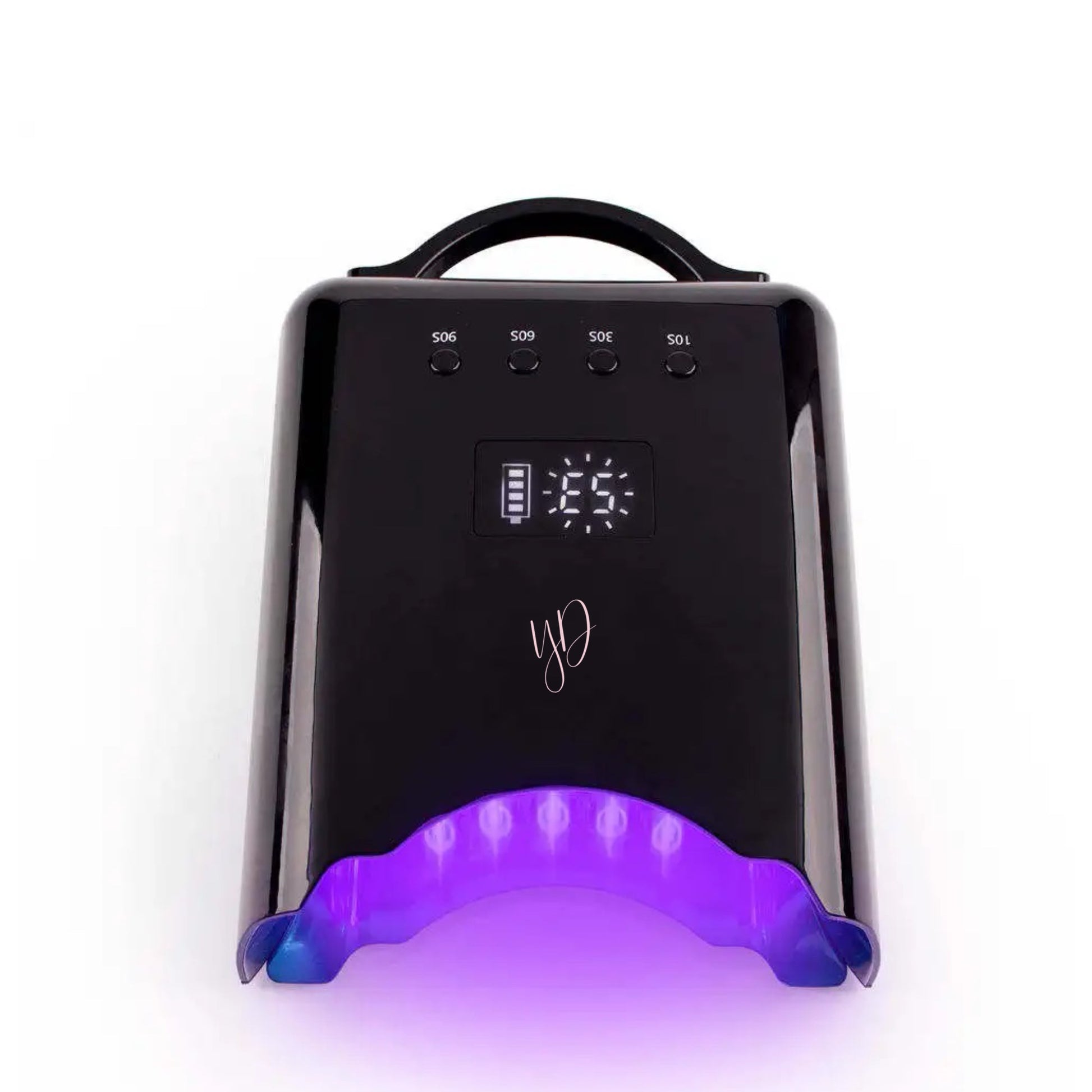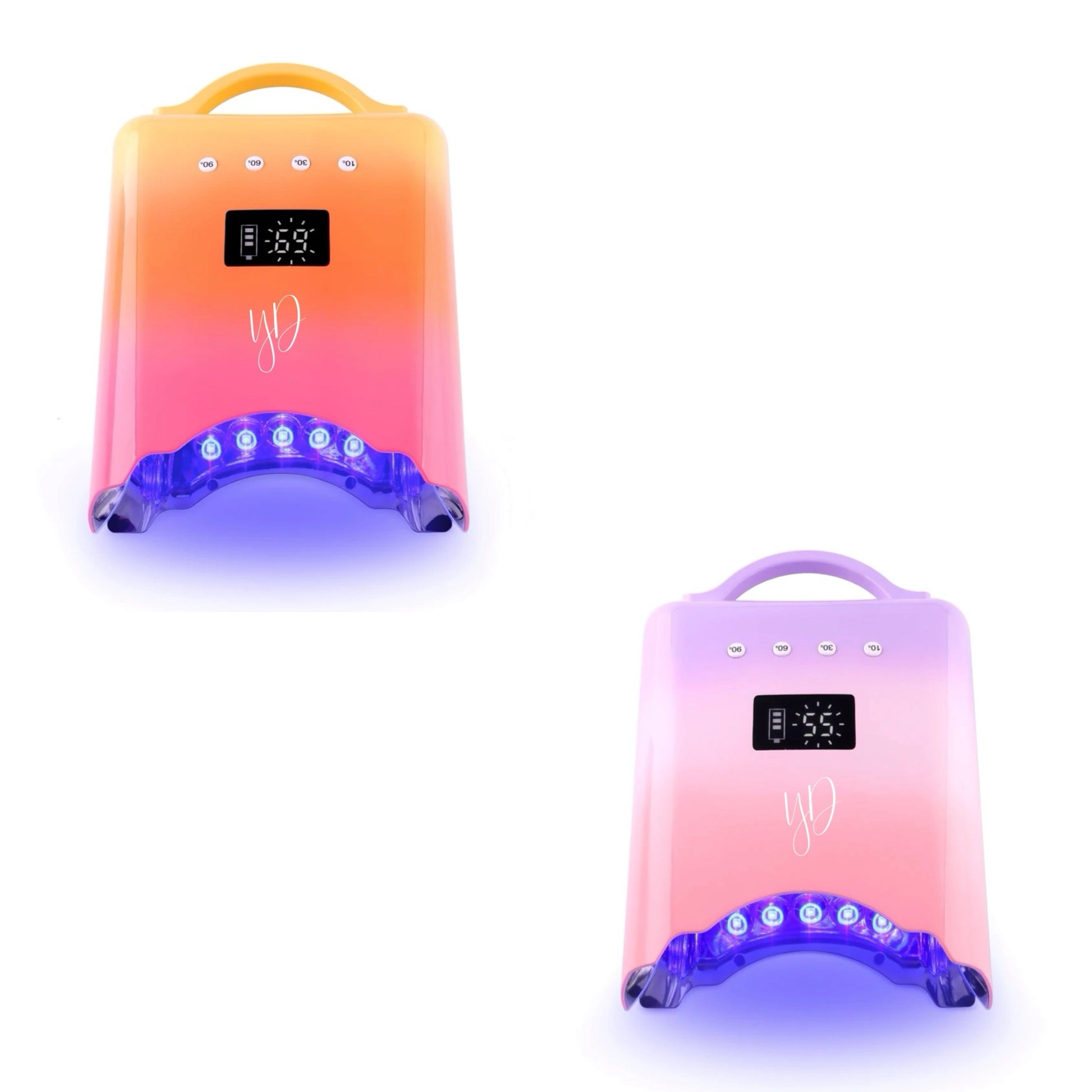 Lámpara híbrida (uv/led), con tecnología UV/LED, 42 bombillas, 78wats, recargable, se puede utilizar con el cable conectado y sin el, efecto espejo para un curado más uniforme, base removible en acero inoxidable con imán para fácil desprendimiento. Ocupa muy poco espacio en la mesa, pantalla completamente digital, 10s, 30S, 60S, 90s