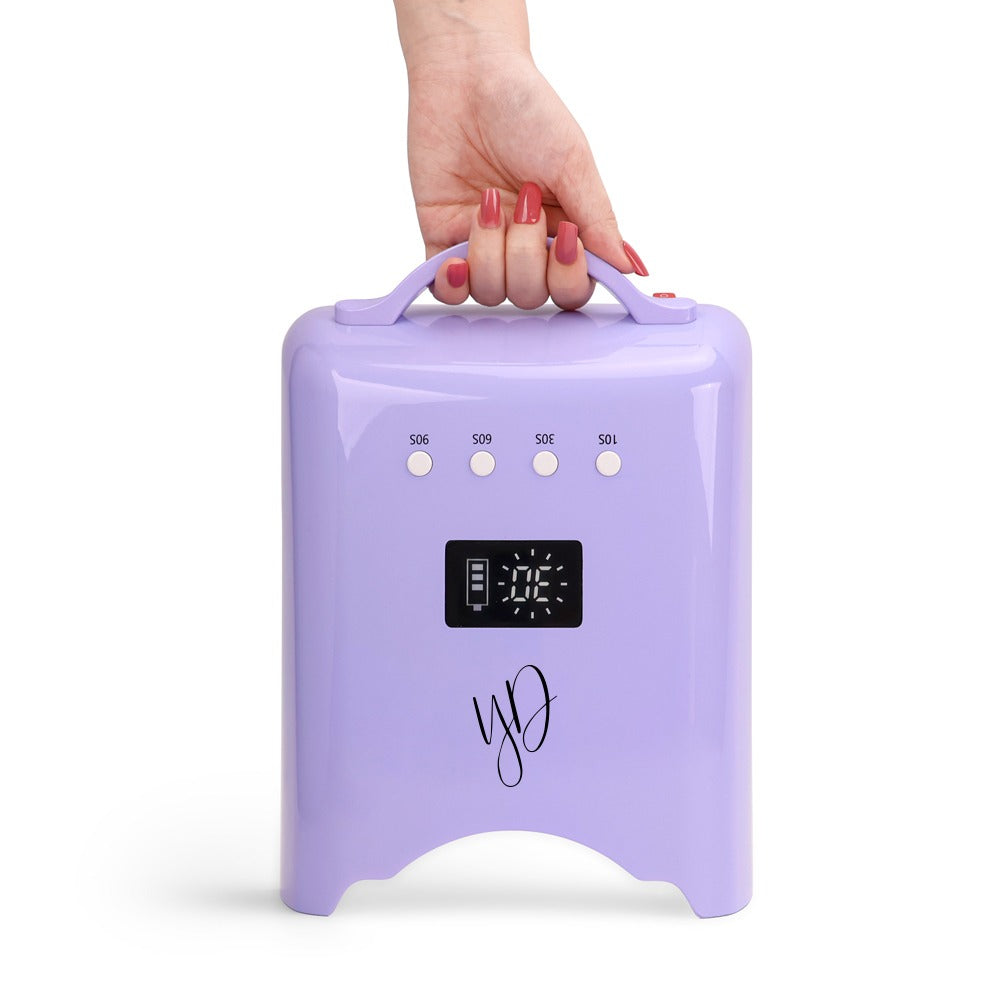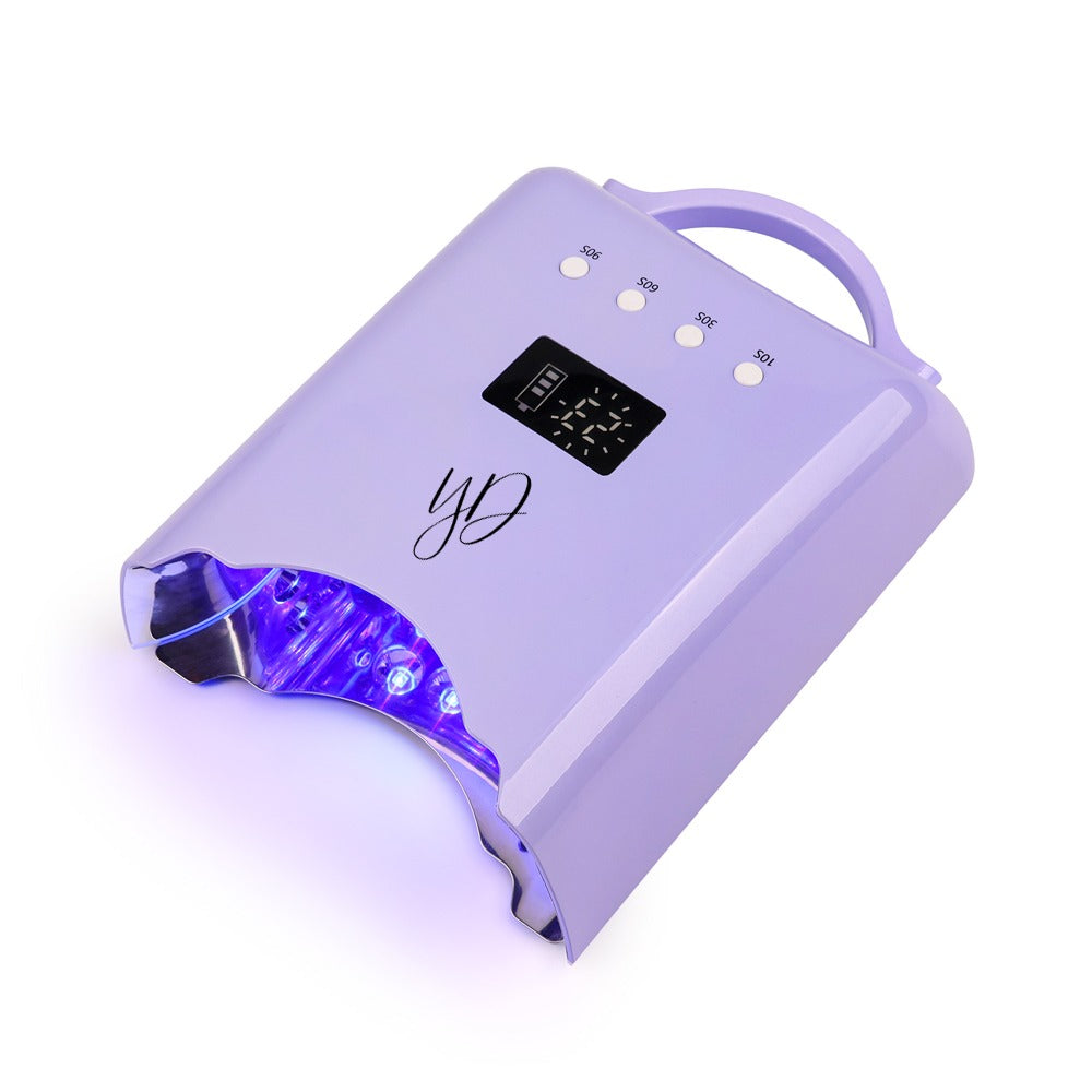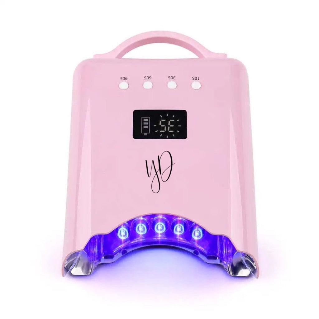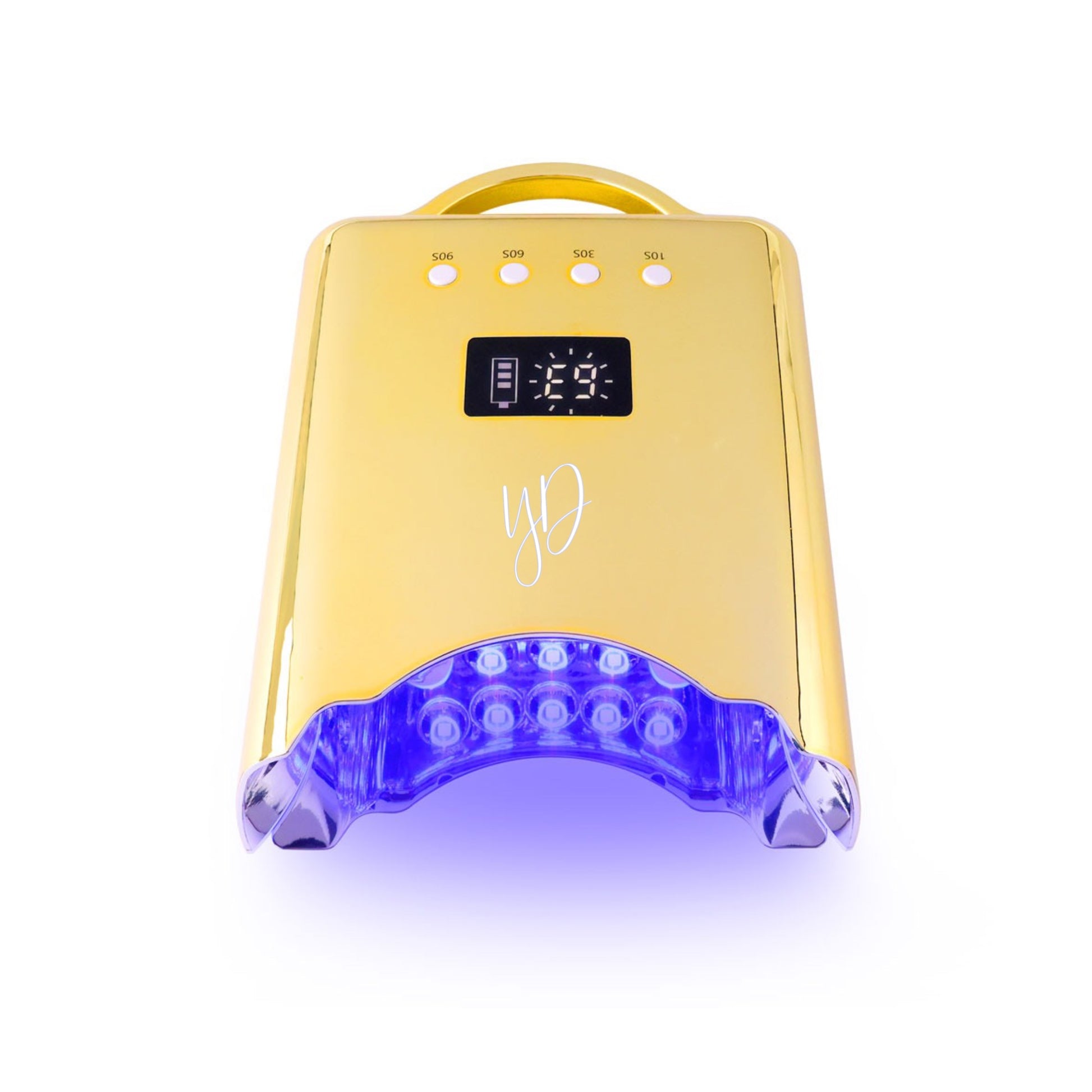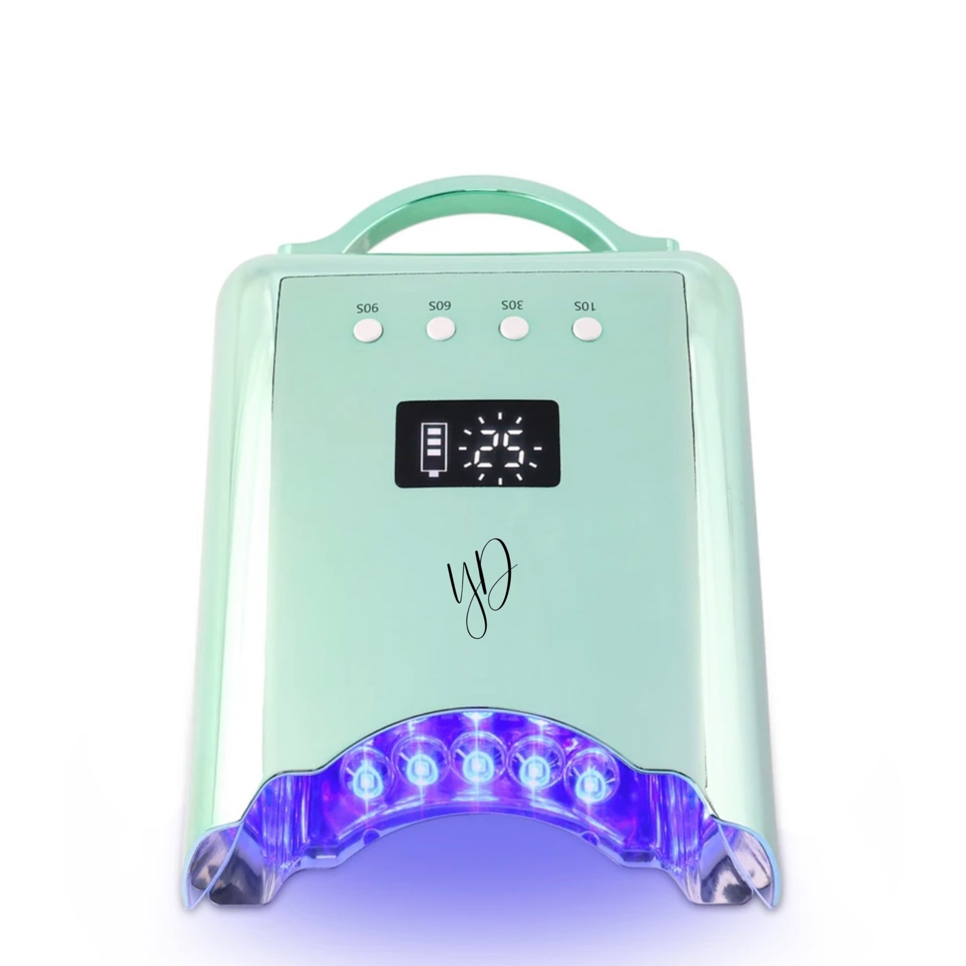 Lámpara híbrida (uv/led), con tecnología UV/LED, 42 bombillas, 78wats, recargable, se puede utilizar con el cable conectado y sin el, efecto espejo para un curado más uniforme, base removible en acero inoxidable con imán para fácil desprendimiento. Ocupa muy poco espacio en la mesa, pantalla completamente digital, 10s, 30S, 60S, 90s