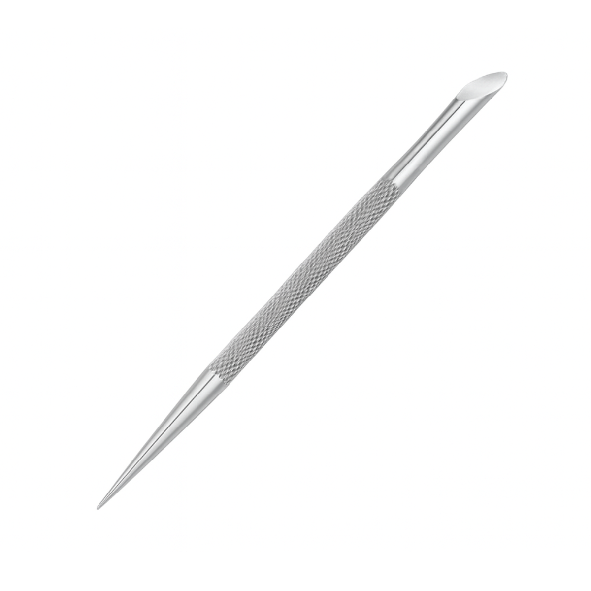 Pusher removedor de residuos y para levantar cuticula, elaborado con material quirúrgico, tallado a mano, para trabajar con o sin limas desechables en su punta.